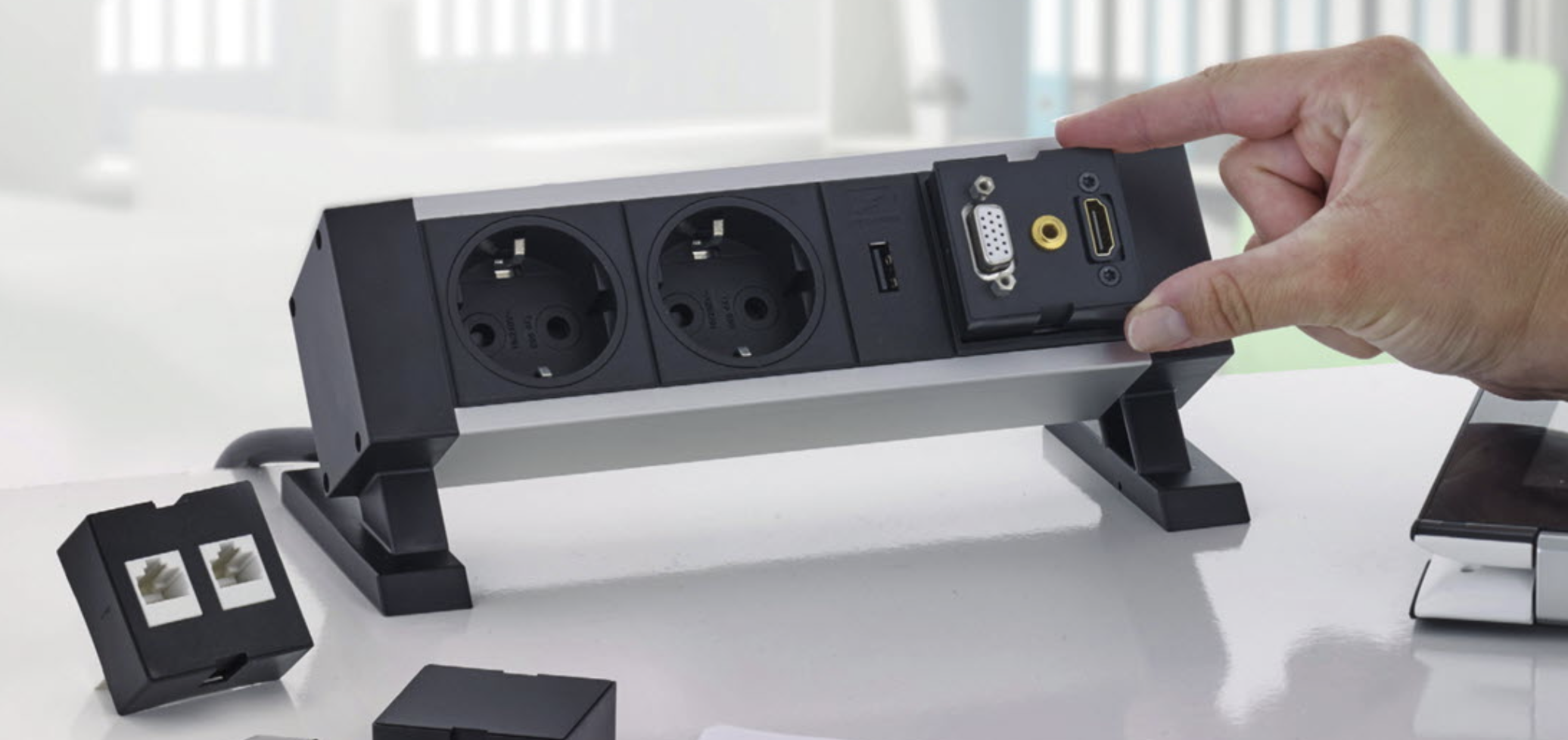 EVOLine Dock Square — это новое поколение настольных систем подключения, объединяющее компактность, мобильность и гибкость. Устройство устанавливается прямо на поверхность стола и обеспечивает удобный доступ к питанию, данным и мультимедиа, не занимая лишнего места.